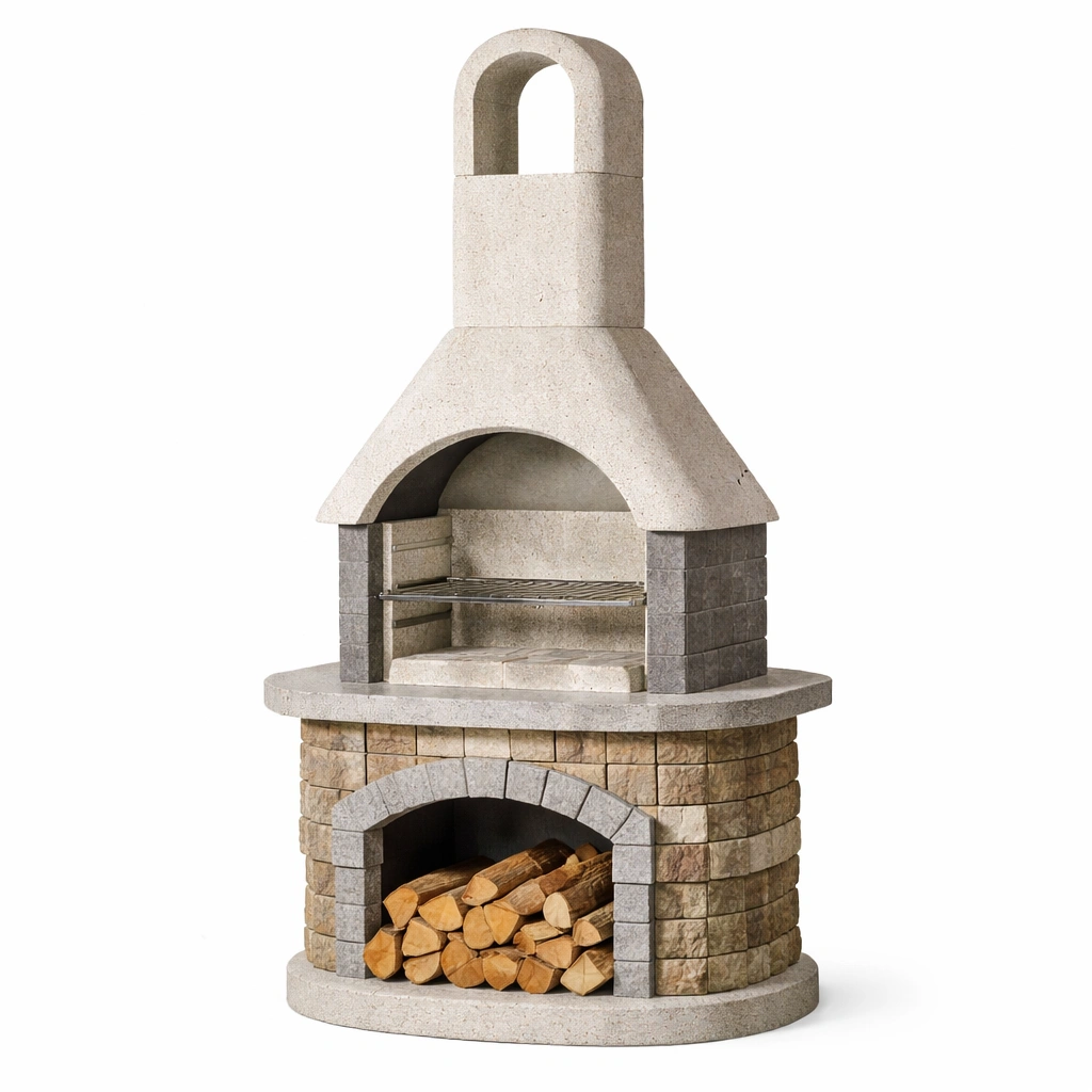 Barbacoa de piedra para exterior con chimenea de hormigón