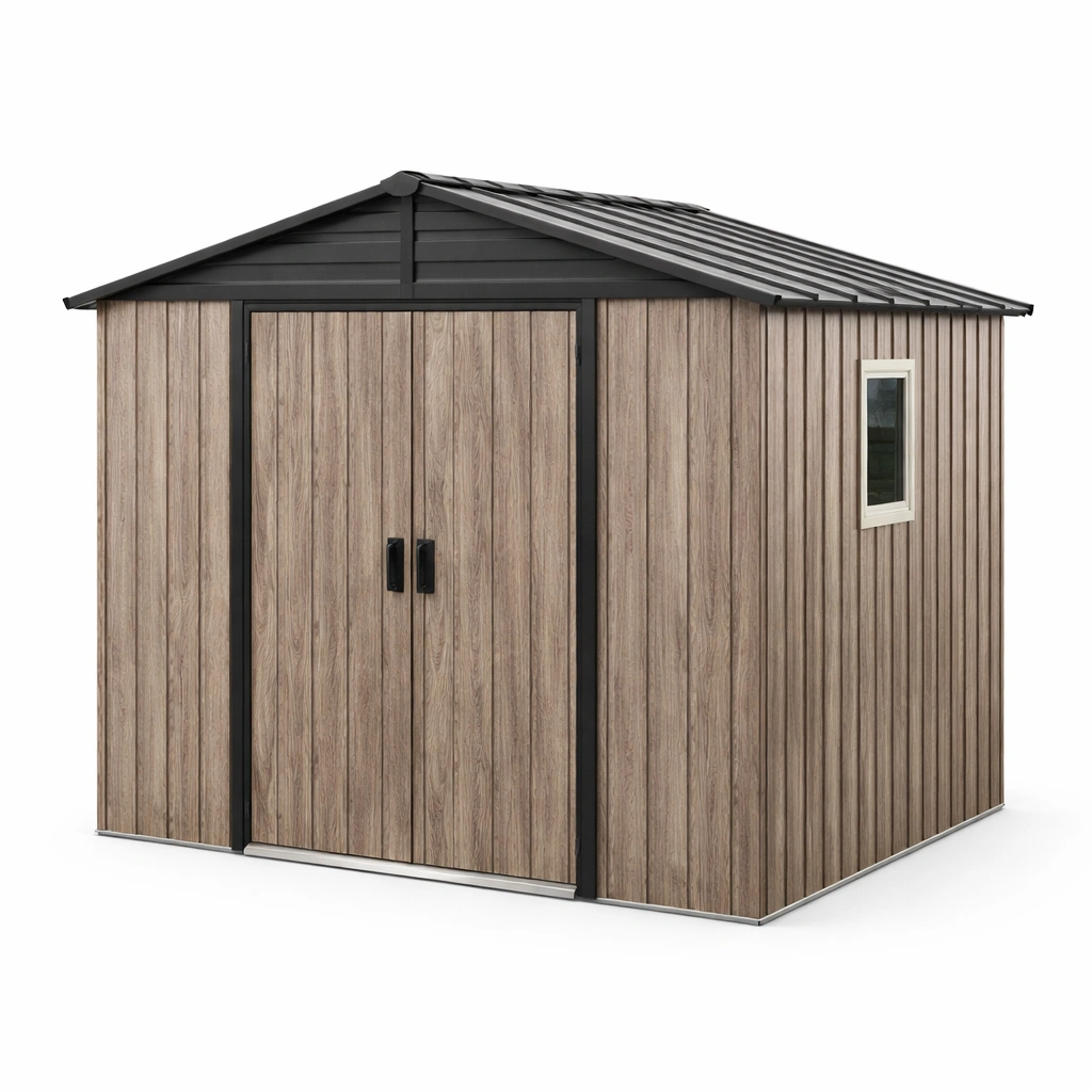Cobertizo de jardín metálico con acabado imitación madera