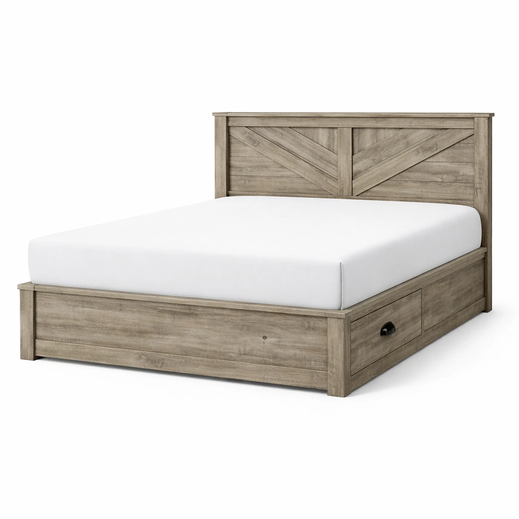 Incluye cabecero decorativo y cajón de almacenamiento lateral